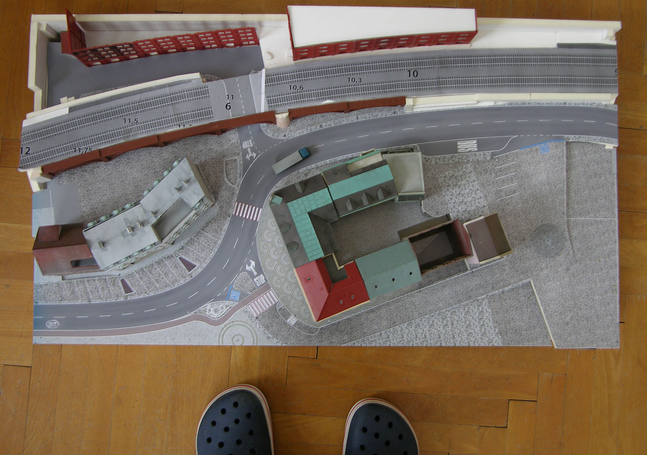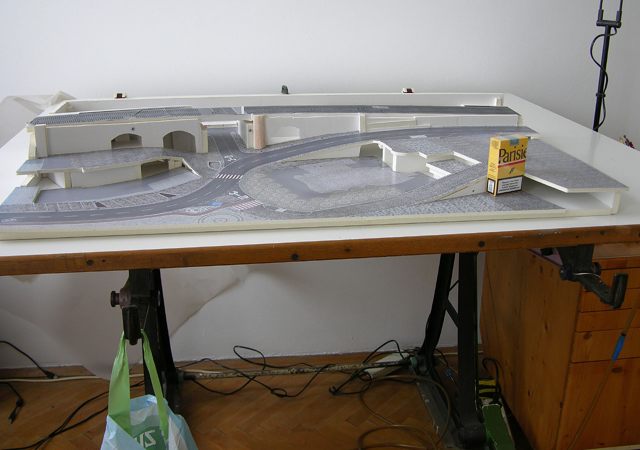 An der rechten Seite schließt direkt - und etwas abrupt - das Segment Anzengrube an, deswegen läuft die Bahn über Stadtbahn-Bögen recht steil nach oben. (Hier sieht man noch die Höhenangaben aus dem aufkaschierten Plan-Ausdruck)